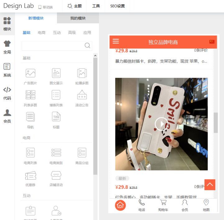设计工具不需要花钱,免费提供,随便用。用这个设计工具设计出来的页面,还可以同时开通支付宝小程序,百度智能小程序,发布APP,手机微商城。