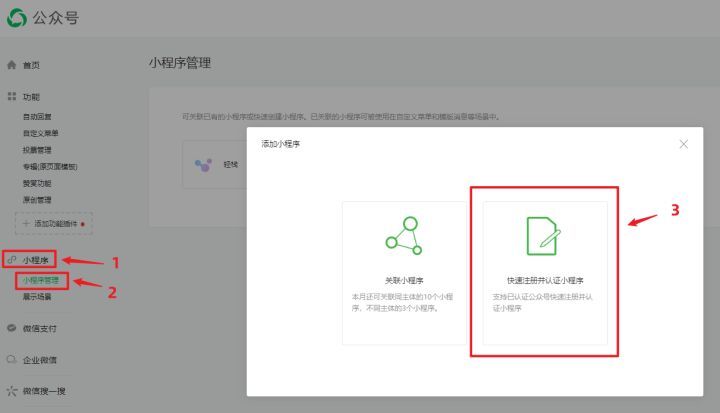 情况1:拥有已经通过企业认证的公众号,众所周知,公众号进行企业认证是需要300元的认证费的,有了这个认证,再去开通小程序,不需要重复缴费,可以理解成快速注册小程序免费。