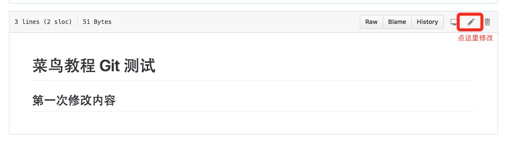 接下来我们在 Github 上点击" README.md" 并在线修改它: