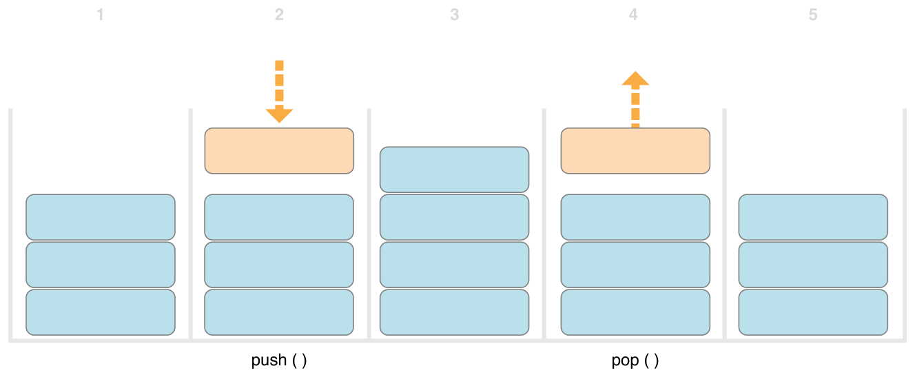 现在有四个值在栈中,最近入栈的那个值在顶部。