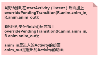 <!-- 默认Activity跳转动画 --><style name="default_animation" mce_bogus="1" parent="@android:style/Animation.Activity"> <item name="android:activityOpenEnterAnimation">@anim/default_anim_in</item> <item name="android:activityOpenExitAnimation">@anim/anim_stay</item> <item name="android:activityCloseEnterAnimation">@anim/anim_stay</item> <item name="android:activityCloseExitAnimation">@anim/default_anim_out</item></style>