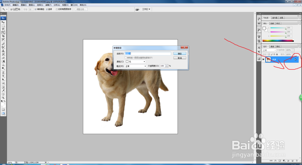 第一步你要打开想要抠图的图片,然后把点击右侧的小锁把图片解锁,建立成一个图层。