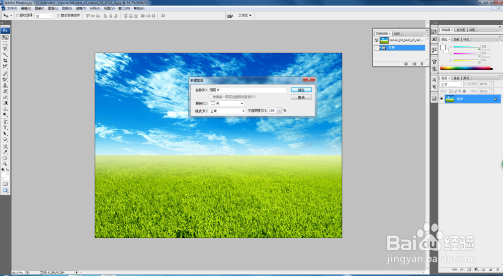 再打开一张你喜欢的背景图片,同样的需要重复第一步把图片解锁建立一个新的图层。