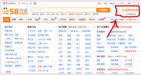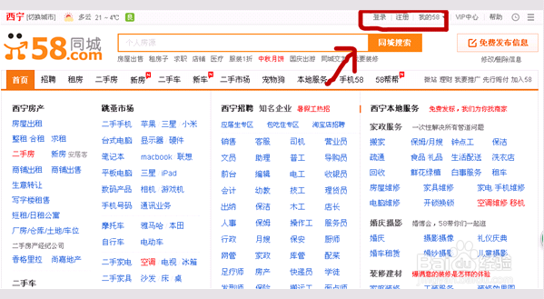 以58同城为例,进入网站在右上角有个”注册“,在这里注册一个58同城账号,后面发布信息要用到,下次发布什么信息省的在注册了哈。