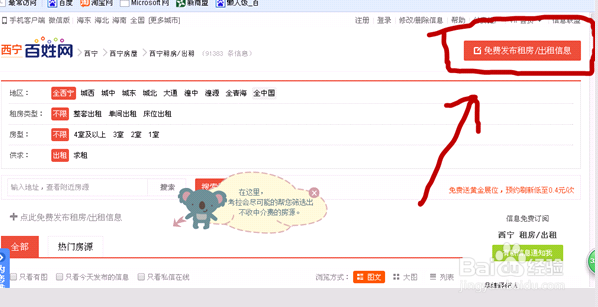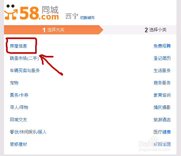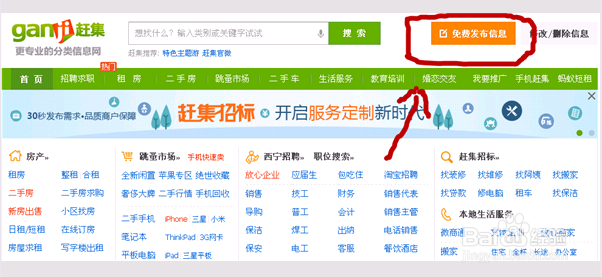 进入网站后就可以看到许多的信息栏(如房屋信息,招聘信息,寻人寻物信息等)选择自己需要发布的信息对应栏,我们以{房屋出租}这个做例子,点击进入填写信息页面。