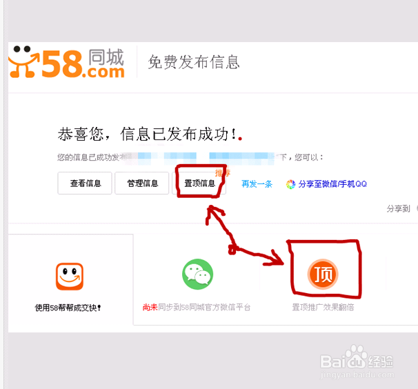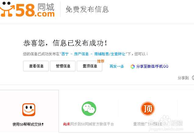 填写完成之后就可以提交发布信息了。发布完成之后也可以选择把信息置顶,这个是收费的哦。